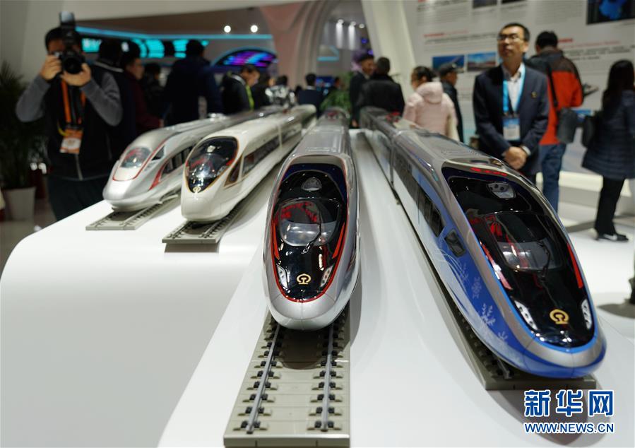 11月20日在展会上拍摄的动车组模型。 新华社记者 张晨霖 摄