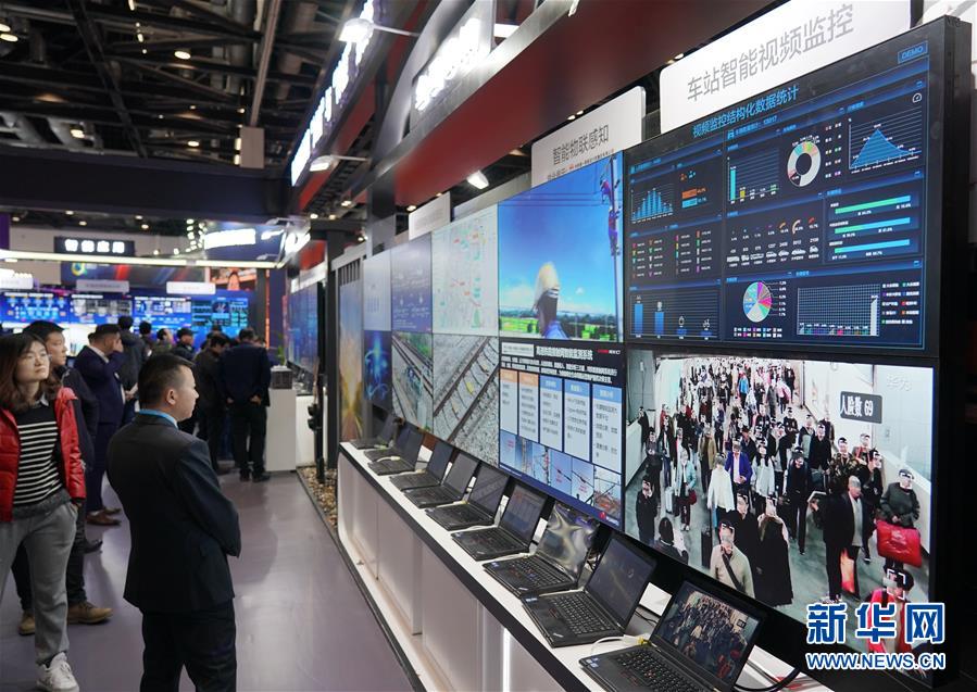 11月20日在展会上拍摄的车站智能视频监控系统。 新华社记者 张晨霖 摄