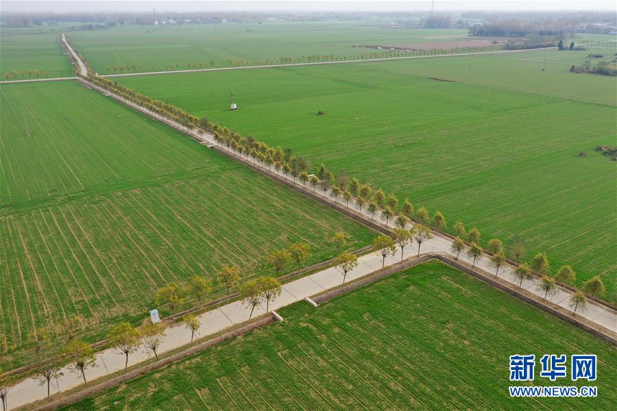 这是11月20日无人机拍摄的河南省许昌市建安区陈曹乡尚庄村附近的麦田。 新华社记者 冯大鹏 摄