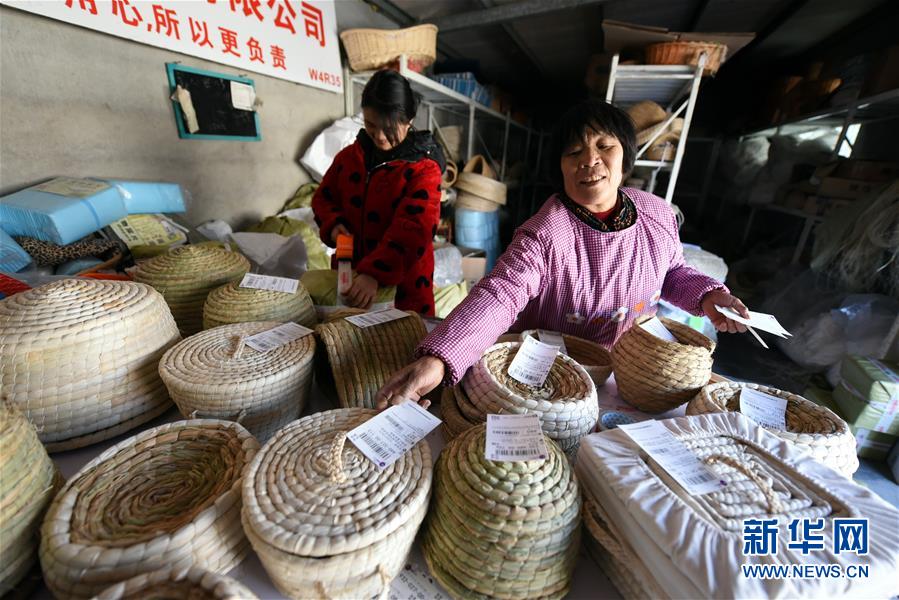 农闲时节,山东省临沂市郯城县农民把收获的水稻、玉米皮等秸秆晾晒消毒后编制成草编工艺品,通过电商等渠道进行外销,既避免了秸秆焚烧造成的环境污染,又增加了收入。当地政府因势利导,协调农商行资金扶持创办了草编合作社,通过网络发布供求信息。目前,全县有10多个专业村上万名农民从事农作物秸秆编制业。 新华社记者范长国摄