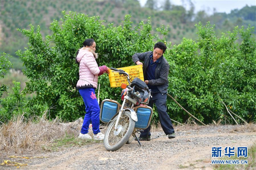 11月20日,在广西鹿寨县鹿寨镇大河村,贫困户韦孝义(右)和妻子韦艳娜在搬运刚刚采摘的蜜桔。 今年46岁的韦孝义是广西鹿寨县鹿寨镇大河村的建档立卡贫困户,母亲年迈多病、哥哥身体残疾、妻子身体也不太好,儿子自6年前患巨大血管瘤后就一直未能上学,在家休养。韦孝义一个人扛起家庭生活的重担,种植蜜桔和甘蔗,积极发展生产,努力改善生活。 针对韦孝义一家的特殊困难,当地党委政府在脱贫攻坚工作中给予了特殊帮扶。韦孝义儿子患病的6年间,鹿寨镇龙田小学的老师坚持定期送教上门,辅导他接受义务教育。目前,韦孝义和妻子种有15亩蜜桔和7亩甘蔗,并得到相应的产业扶持。2018年,韦孝义得到补助进行危旧房改造,建起了新房。目前,一家人还得到相应的低保、高龄、残疾等补贴。 经过自己的辛勤劳作和政府帮扶,韦孝义一家目前已经进入脱贫公示阶段。 新华社记者 黄孝邦 摄