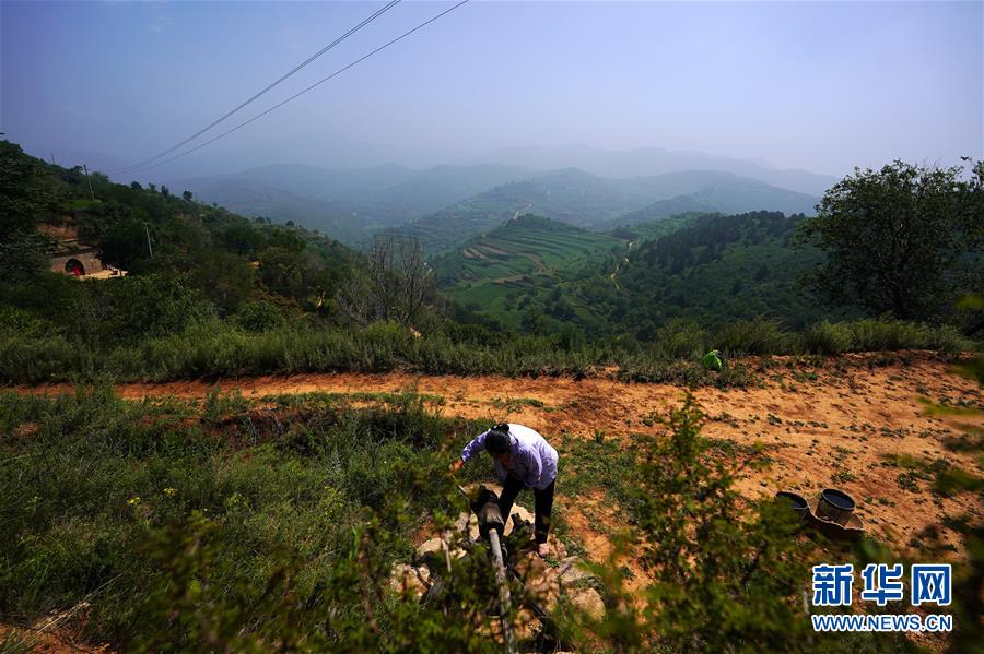 在山西翼城县南岭村樊家岭自然村,53岁的村民王春儿在自家的旱井里打水(7月30日摄)。王春儿家的旱井深约10米,井里目前存的水不足1米,家里五口人都是靠着这眼旱井用水。 新华社记者 詹彦 摄