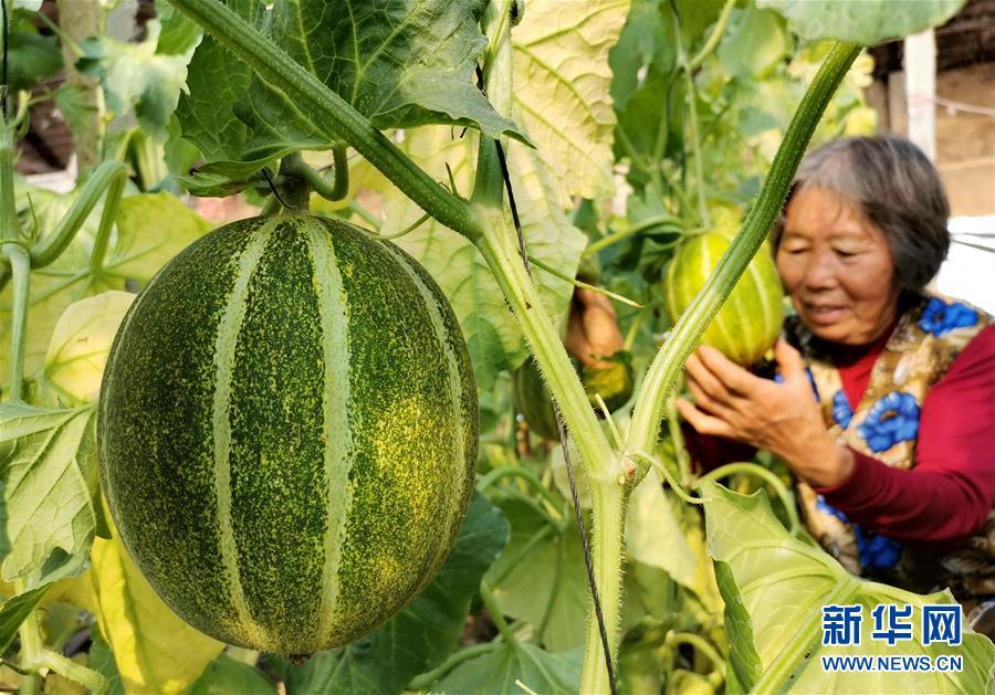 11月22日,乐亭县胡家坨镇东黄口村的农民在大棚内管理甜瓜。新华社记者杨世尧摄