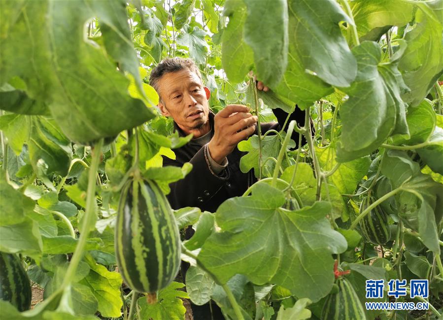 11月22日,乐亭县胡家坨镇东黄口村的农民在大棚内管理甜瓜。新华社记者杨世尧摄