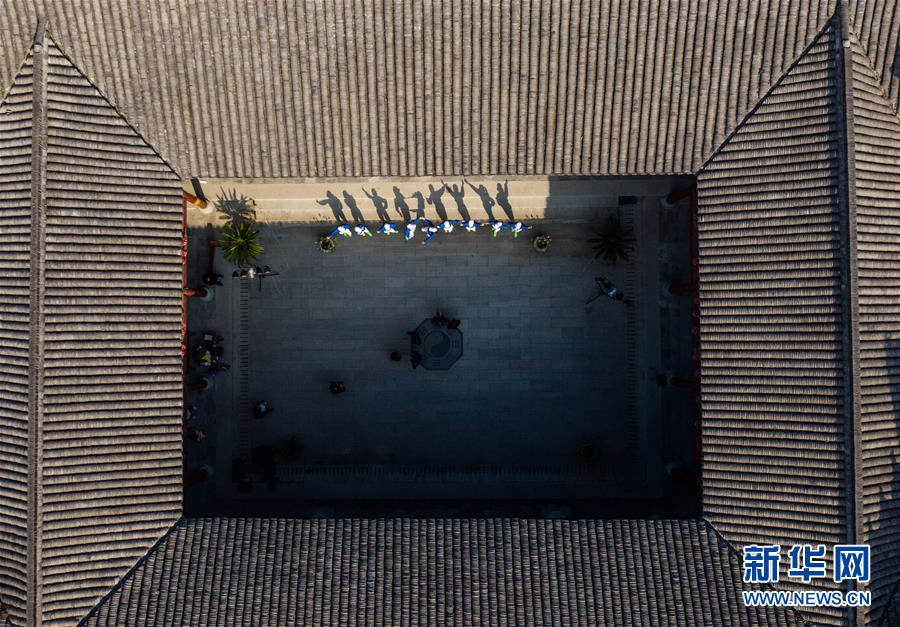 11月22日,在河北省故城县郑口镇第五小学,学生们在故城县消防救援队员的指导下学习使用灭火器。