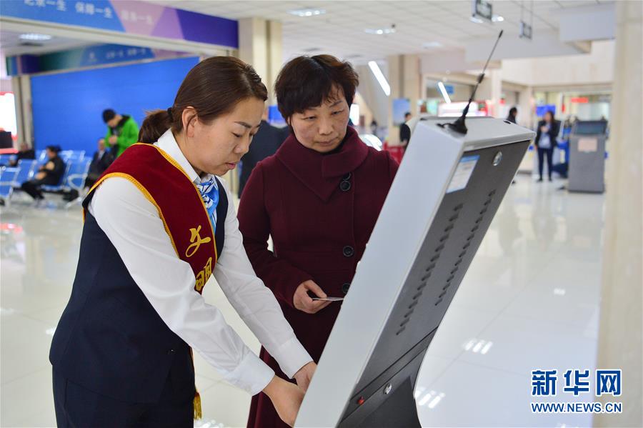 11月21日,在兰州市政务服务中心,文明引导员帮助办事人员办理业务。新华社发(马希平 摄)