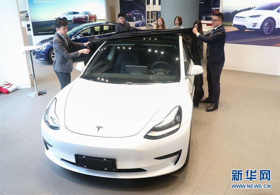 11月22日,特斯拉国产Model 3在上海一家特斯拉体验店亮相。新华社记者 丁汀 摄