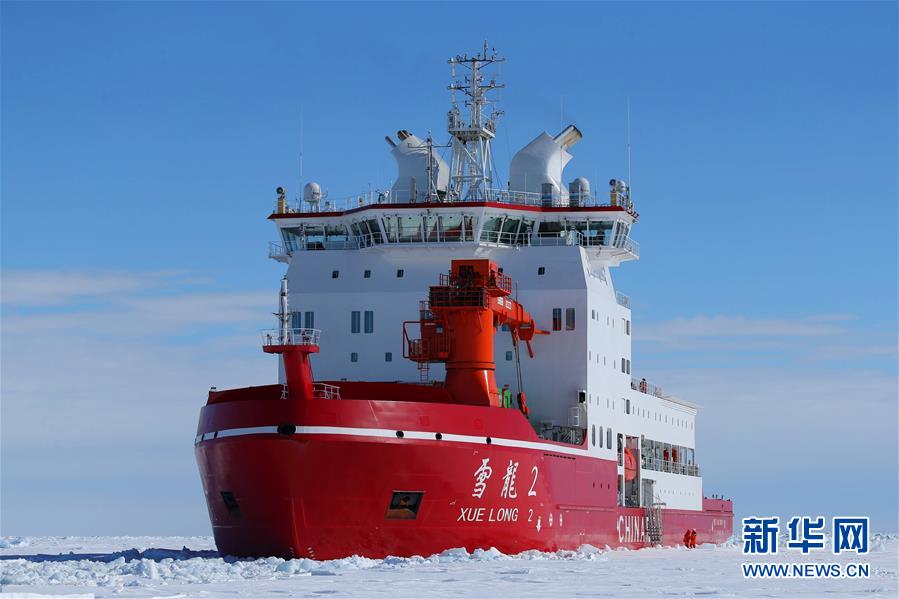 破冰间隙的“雪龙2”号(11月21日拍摄)。新华社记者 刘诗平 摄
