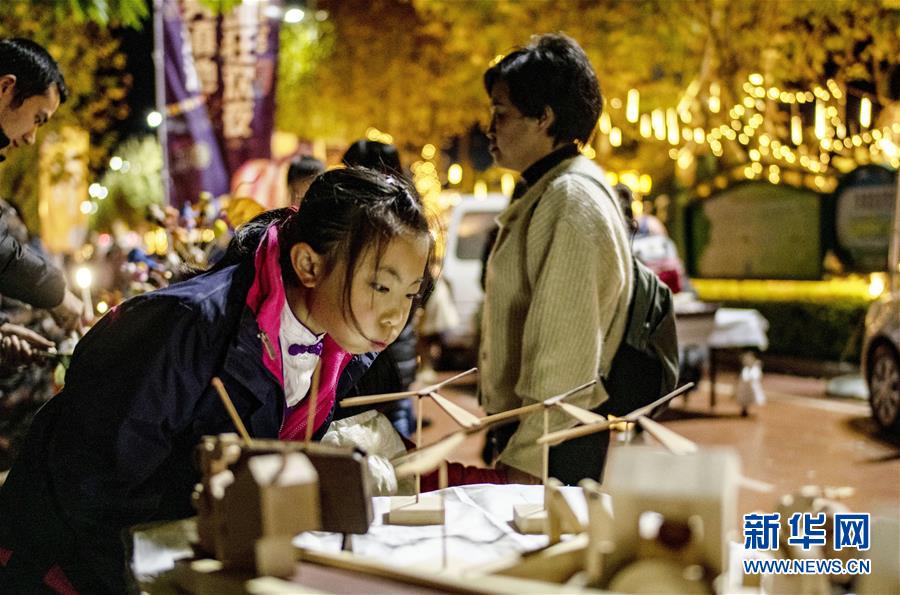 11月22日,小朋友在昆明市海埂公园游玩。 当日,昆明滇池湖畔举行“点亮滇池·海埂夜明珠启幕活动”,文创产品展示、民间艺人演艺、星空影院、烧烤派对吸引众多市民前来休闲,“夜经济”点亮滇池岸边“不眠夜”。 新华社记者 江文耀 摄