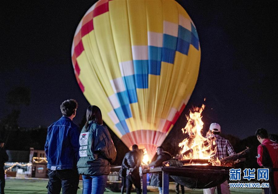 11月22日,市民在昆明市海埂公园看热气球升空。 当日,昆明滇池湖畔举行“点亮滇池·海埂夜明珠启幕活动”,文创产品展示、民间艺人演艺、星空影院、烧烤派对吸引众多市民前来休闲,“夜经济”点亮滇池岸边“不眠夜”。 新华社记者 江文耀 摄