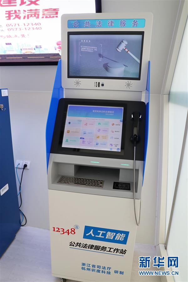 11月18日在浙江桐乡一处“24小时法超市”内拍摄的人工智能公共法律服务工作站。 桐乡司法局于2019年8月设立“24小时法超市”,目前使用次数已超过2400次。同时,通过“云司法”小程序实现了远程异地调解。300个调解组织的1000多位调解员,实时在线为群众服务。这些司法“互联网+”的措施方便了群众,对推动社会治理法治化发挥了积极作用。 新华社记者 龚兵 摄