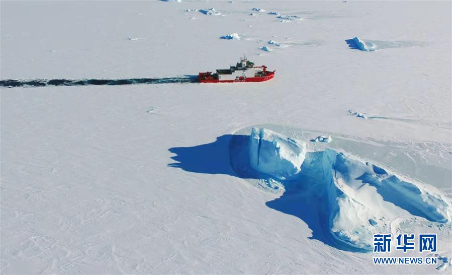 “雪龙2”号在进行破冰作业(11月22日摄)。新华社记者 刘诗平 摄