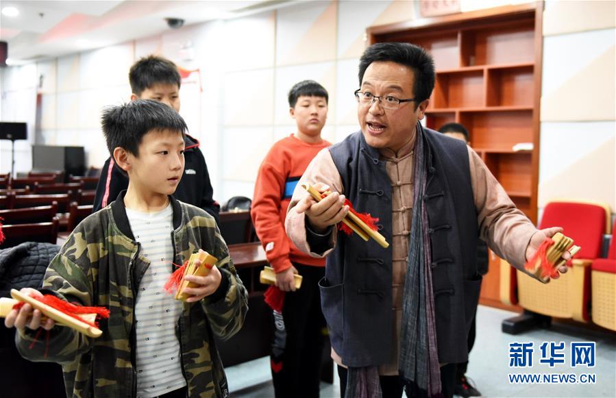 11月23日,在邹平市新时代文明实践中心培训室,教师在教授学生学习山东快板。 近年来,山东省邹平市积极建设和打造社区文明实践分中心和实践站点,定期开展公益课堂、乡村戏台、文明大讲堂等丰富多彩的社区群众文化活动,不断提高群众文明意识,增强文明素养。 新华社记者范长国摄