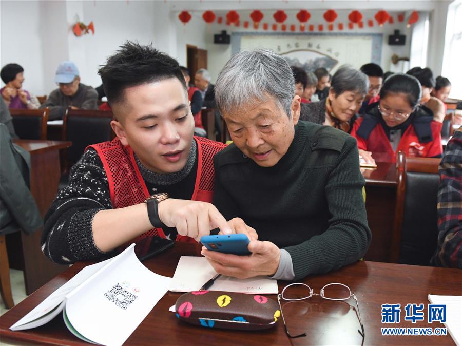 11月24日,志愿者在教慈溪市虞波社区居民使用智能手机。 当日,浙江省慈溪市钱海军志愿服务中心的志愿者来到虞波社区老年课堂,教中老年人在智能手机上使用微信、网上购物、获取公交出行信息、缴纳水电费等。今年以来,钱海军志愿服务中心志愿者每月都走进当地社区开展此项服务,受到社区居民好评。 新华社记者 徐昱 摄