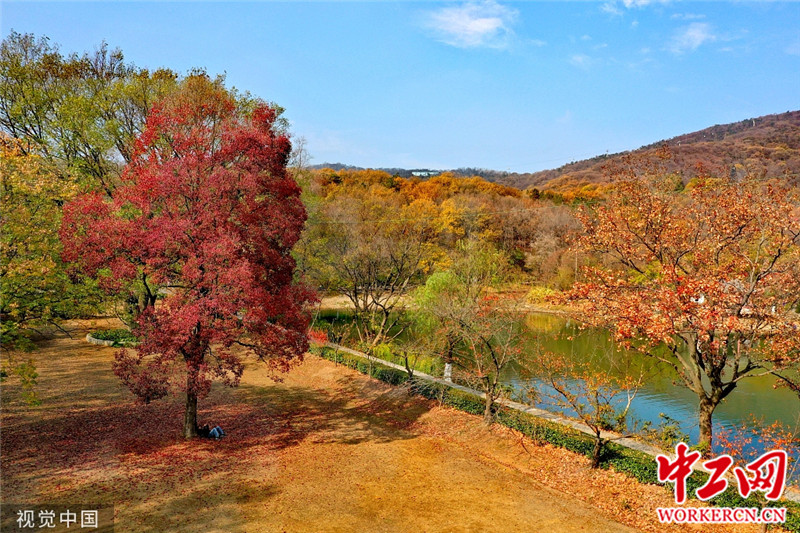 南京:航拍钟山风景区 层林尽染展露绝佳美景