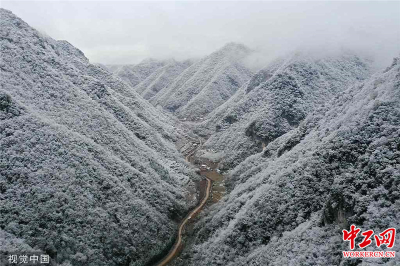 湖北襄阳:保康迎来降雪天气 雪后山村美如画