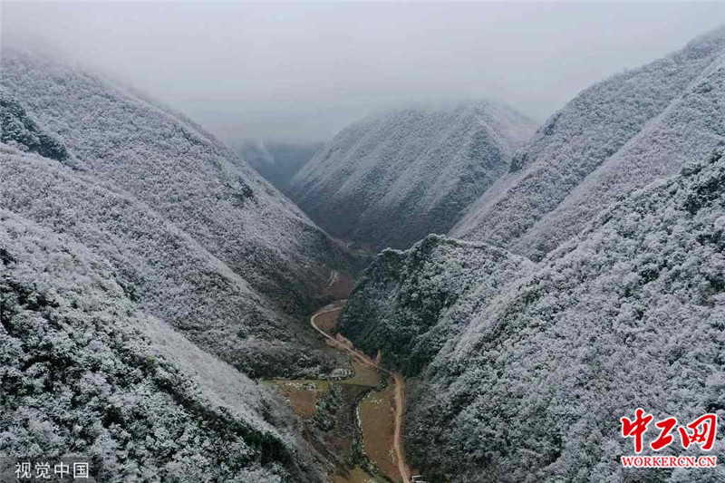 湖北襄阳:保康迎来降雪天气 雪后山村美如画