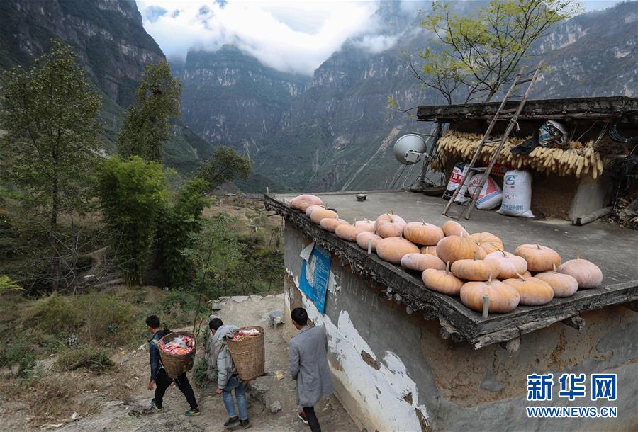 11月24日,在昭觉县支尔莫乡阿土列尔村,莫色拉博(左)、莫色苏布惹(中)背着猪肉等礼品到亲戚家拜年。 11月20日至26日是四川省凉山彝族自治州大小凉山彝族群众传统节日——彝族年,悬崖上的阿土列尔村的彝族群众杀年猪、祭祀和走亲拜年,庆祝一年一度的彝族年。 阿土列尔村是“悬崖村”,位于四川省凉山彝族自治州昭觉县支尔莫乡,坐落在海拔1400-1600米山坳中,这里居住着60多户彝族群众,村民走出大山,需要攀爬悬崖。近年来,经过政府和社会各界的有力帮扶,“悬崖村”已经“藤梯”换“钢梯”,孩子们上学不再“步步惊心”,村里开通4G网络、设立银行助农服务点,还吸引社会资本打造文旅项目,让不少村民从“放羊娃”变成了山地旅游向导。 新华社记者 江宏景 摄