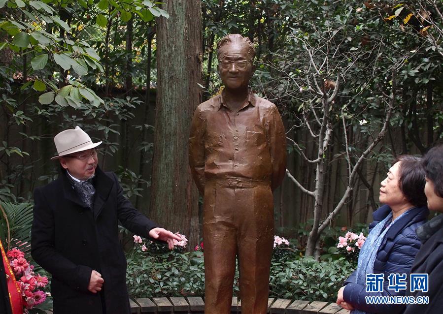 11月25日,雕塑家李象群(左)与巴金先生的女儿李小林在巴金故居为巴金铜像揭幕。 当日,上海举行纪念巴金诞辰115周年活动。巴金故居、中国现代文学馆、上海文学发展基金会在徐汇艺术馆联合主办的“温暖的友情——巴金与友朋往来手札展”开幕,展出巴金与鲁迅、叶圣陶、茅盾、冰心、沈从文、赵树理等老友的往来手札。 新华社记者 任珑 摄