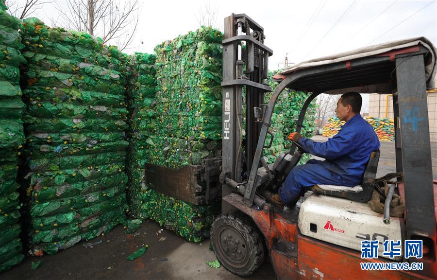 11月22日,辽宁胜达环境资源集团工作人员将收集上来的饮料瓶送入车间加工。新华社记者 杨青 摄