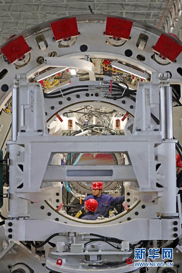 11月22日,辽宁三三工业有限公司工程技术人员在车间生产盾构机。新华社记者 杨青 摄