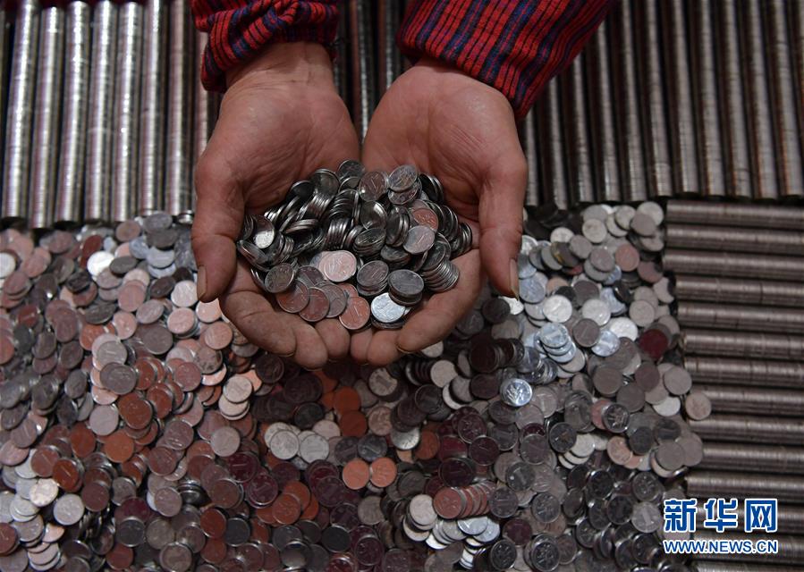 在江西省南昌市青山湖区湖坊镇永人村,龚顺生整理卖开水收来的硬币(11月20日摄)。新华社记者 彭昭之 摄