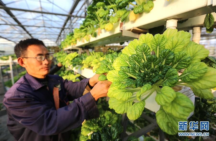 11月26日,在河北固安县顺斋瓜菜种植专业合作社,工作人员在温室大棚内查看蔬菜长势。新华社记者 王晓 摄