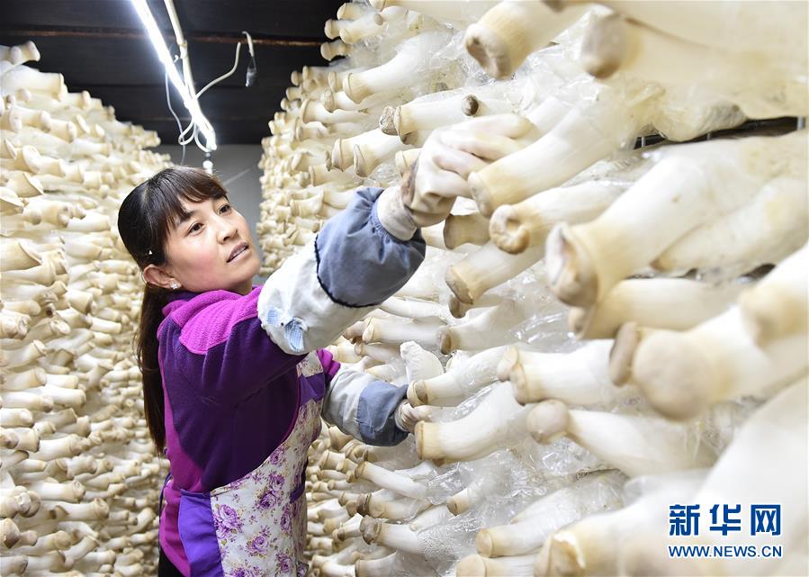 11月26日,一位村民在河北省平泉市黄土梁子镇双河社区食用菌种植园大棚内采摘杏鲍菇。 随着冬季的到来,河北省平泉市气温逐渐走低。农户在当地农业园区的温室大棚内从事“菌菜果”特色产业,使寒冷的冬季不再是农闲的季节,实现稳定增收。 近年来,平泉市在全市脱贫摘帽后扶持力度不减,按照“南果北菜全域菌”的发展布局,围绕设施农业在全市建成各类农业园区9万亩,帮助当地群众稳定致富。 新华社记者 李贺 摄