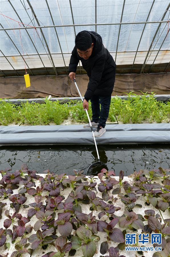 11月27日,工作人员在开封市祥符区西姜寨乡鱼菜共生基地忙碌。 2019年以来,河南省开封市祥符区西姜寨乡在推进农业现代化工作中,推广鱼类和蔬菜共同养种,通过水循环系统将养鱼产生的粪便等微生物进行分解,转化为蔬菜生长所需的营养物质,实现“养鱼不换水,种菜不施肥”的生态种养模式,取得良好经济效益和生态效益。 新华社记者任鹏飞摄