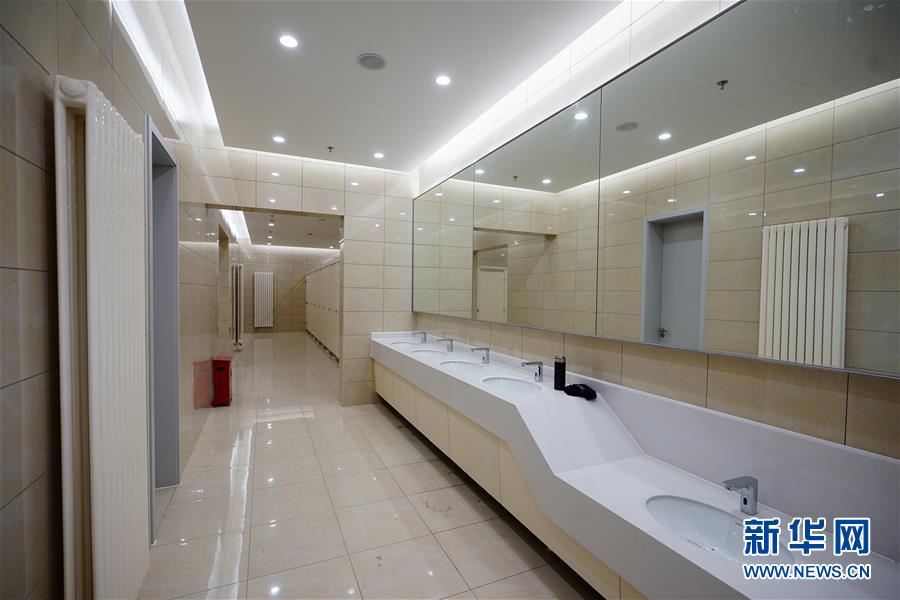 11月27日拍摄的京张高铁东花园北站内的卫生间。 京张高铁东花园北站装饰装修工程已经完工,日前整体亮相。京张高铁沿线各车站即将竣工,为下一步运行实验奠定基础。 新华社记者 邢广利 摄