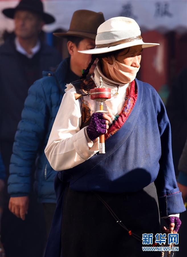 这是10月27日在拉萨八廓街拍摄的朝圣者。新华社记者 陈天湖 摄