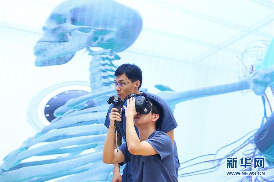 11月27日,参赛选手在比赛中使用VR设备答题。 当日,北京协和医院外科青年医师技能大赛举行决赛。经过前期的集训和多维度考核选拔,最终有四支队伍进入决赛,青年医师现场进行手术操作等方面的比拼,展现临床综合能力。比赛全程还通过远程系统向西藏自治区人民医院进行了直播,促进青年医生交流学习。 新华社记者 张玉薇 摄