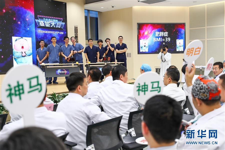11月27日,评委在比赛中为选手打分。 当日,北京协和医院外科青年医师技能大赛举行决赛。经过前期的集训和多维度考核选拔,最终有四支队伍进入决赛,青年医师现场进行手术操作等方面的比拼,展现临床综合能力。比赛全程还通过远程系统向西藏自治区人民医院进行了直播,促进青年医生交流学习。 新华社记者 张玉薇 摄