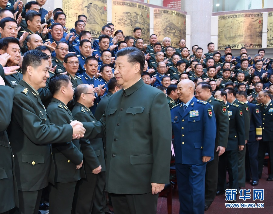 11月27日上午,全军院校长集训在国防大学开班。中共中央总书记、国家主席、中央军委主席习近平出席开班式并发表重要讲话,代表党中央和中央军委,向全军院校长和军事教育战线的同志们致以诚挚问候。这是习近平亲切接见集训班全体学员。 新华社记者 李刚 摄