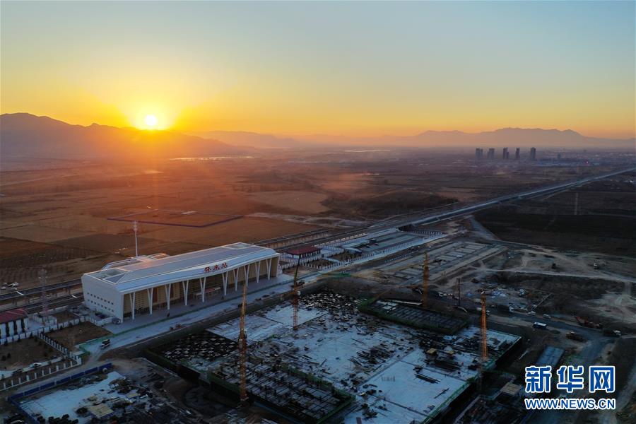 这是11月27日无人机拍摄的京张高铁怀来站。 目前,京张高铁沿线各车站即将竣工,为下一步运行实验奠定了基础。 新华社记者 邢广利 摄