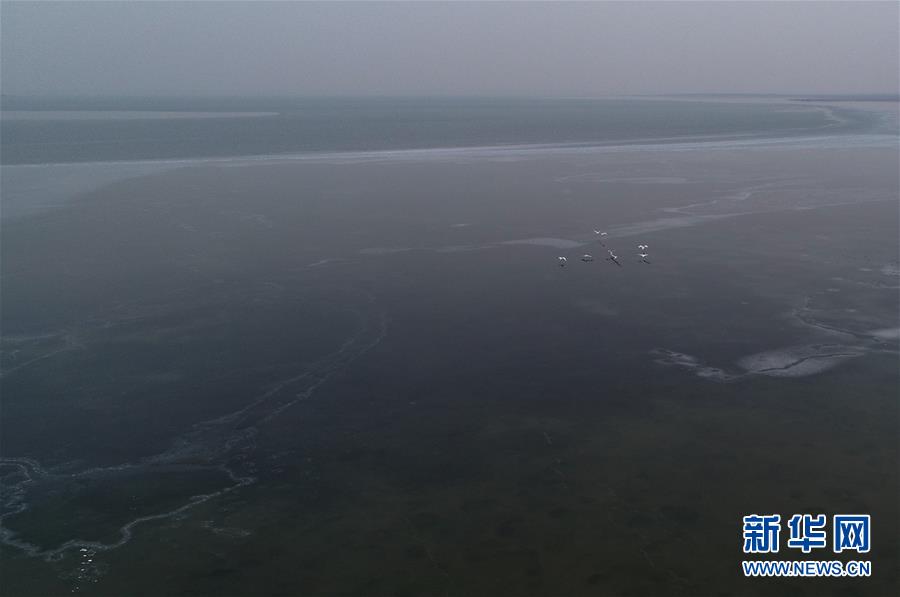 红碱淖冬日景象(11月28日无人机拍摄)。 冬日,位于陕西神木市的红碱淖别有一番景致,一群越冬候鸟到访,为这个中国最大的沙漠淡水湖增添了活力与生机。 新华社记者 邵瑞 摄
