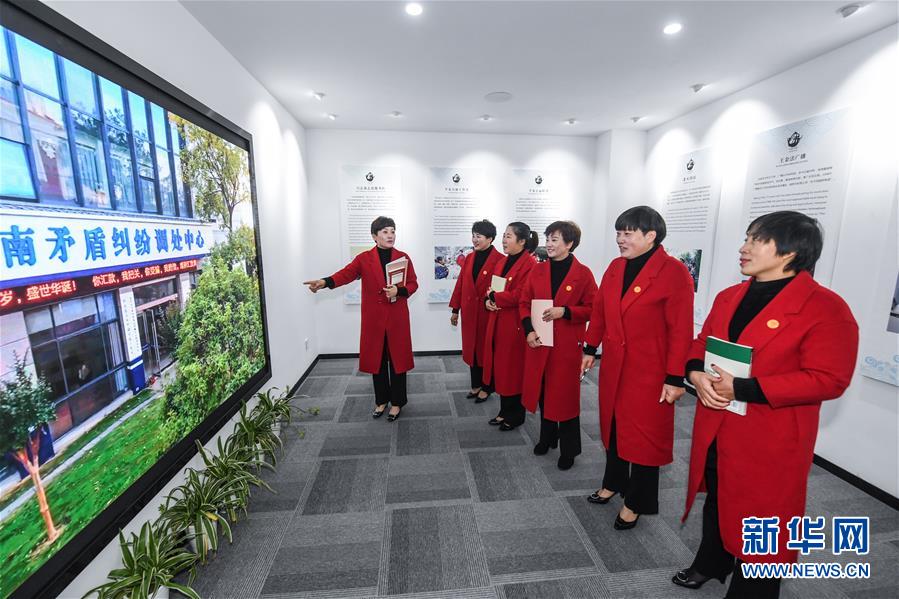 11月29日,“平安大姐”工作室的志愿者在组织学习各地优秀的社会治理经验和调解纠纷案例。新华社记者 徐昱 摄