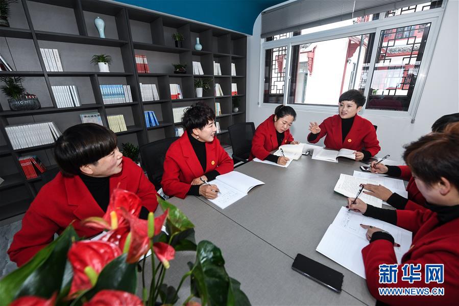 11月29日,“平安大姐”工作室的志愿者在织里镇社会治理综合服务中心开例会。该工作室每周都召开例会,总结一周的调解纠纷、公益事业等工作,并对下周工作内容进行布置、讨论。新华社记者 徐昱 摄