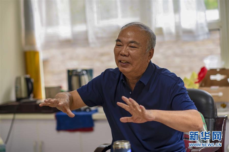 张亚平在家中介绍当年在若羌县种植红枣的情况(8月9日摄)。新华社记者 赵戈 摄