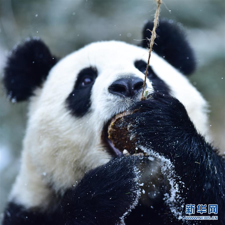 11月29日,在西宁熊猫馆内,一只大熊猫在吃饲养员投送的食物。 当日,青海省西宁市迎来降雪,西宁熊猫馆四只“萌宠”大熊猫在雪天里享受着吃竹子的乐趣。据了解,大熊猫生活的适宜温度在26摄氏度至零下5摄氏度之间,冬季气温低于零下5摄氏度时,场馆会启用保暖设施。 新华社记者 吴刚 摄