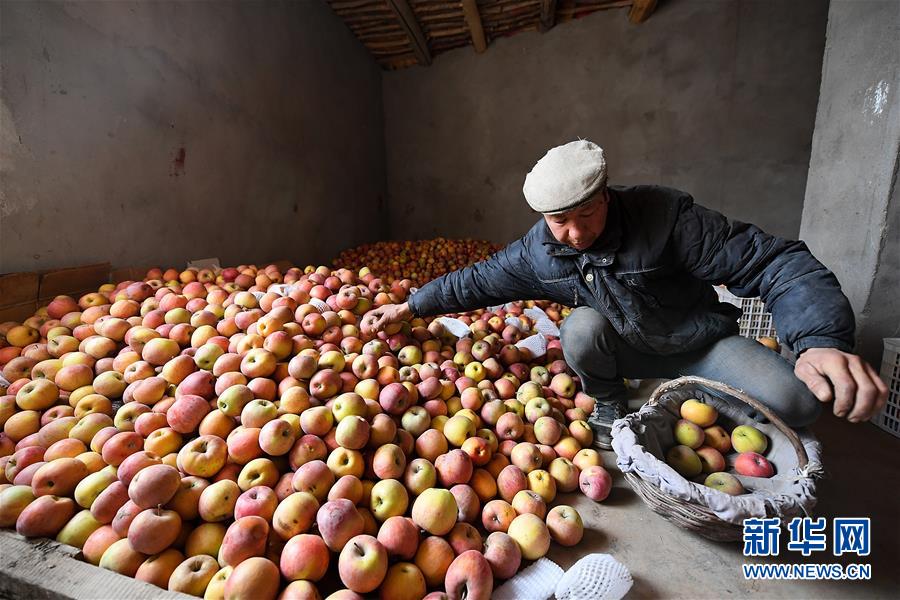 11月28日,在新疆阿克苏地区红旗坡农场,农户对苹果进行分拣。 地处新疆塔里木盆地的阿克苏地区是我国著名的苹果产地之一。目前,全地区已基本完成本年度苹果采摘入库工作,一箱箱阿克苏冰糖心苹果即将发往全国各大市场,迎来大规模上市。 新华社记者 宋彦桦 摄