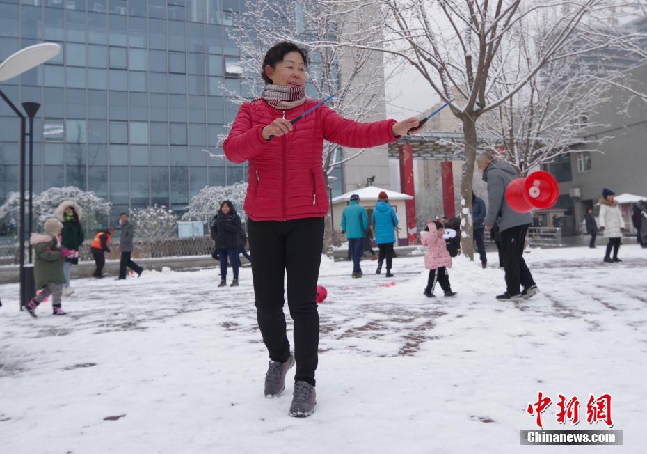 11月30日,北京市民雪地中抖空竹。北京市从29日起出现降雪,并达到初雪标准。中新社记者 贾天勇 摄