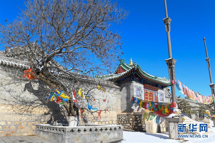 这是11月30日无人机拍摄的乌素图召雪景。11月29日,内蒙古呼和浩特市迎来降雪,位于呼和浩特市回民区境内的乌素图召,在瑞雪装点下呈现出银装素裹的美丽景观。新华社记者 彭源 摄