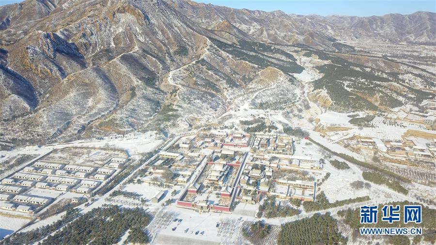 这是11月30日无人机拍摄的乌素图召雪景。11月29日,内蒙古呼和浩特市迎来降雪,位于呼和浩特市回民区境内的乌素图召,在瑞雪装点下呈现出银装素裹的美丽景观。新华社记者 彭源 摄