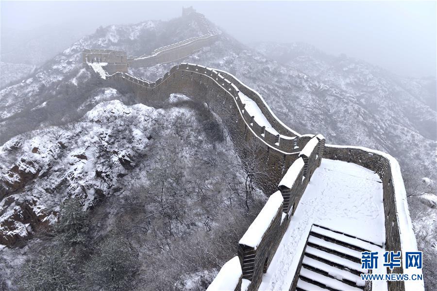 这是11月30日拍摄的承德市滦平县金山岭长城雪景。 近日,河北多地迎来降雪天气,雪后大地一片银装素裹,美不胜收。 新华社发(周万平 摄)