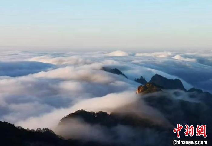 黄山云海在群峰之间迎风激荡。 杨绯 摄