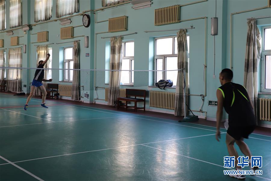 黑龙江省鹤岗市市民在“共享”健身中心内打羽毛球(11月27日摄)。 新华社发(徐凯鑫 摄)