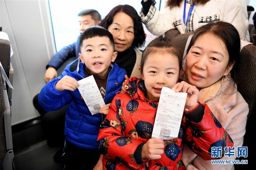12月1日,旅客在阜阳西站开往上海虹桥站的G7787首发列车上展示购票信息单。新华社记者刘军喜摄
