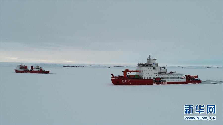12月1日,“雪龙”号与“雪龙2”号相聚在中山站西北方向10公里处。新华社记者 刘诗平 摄