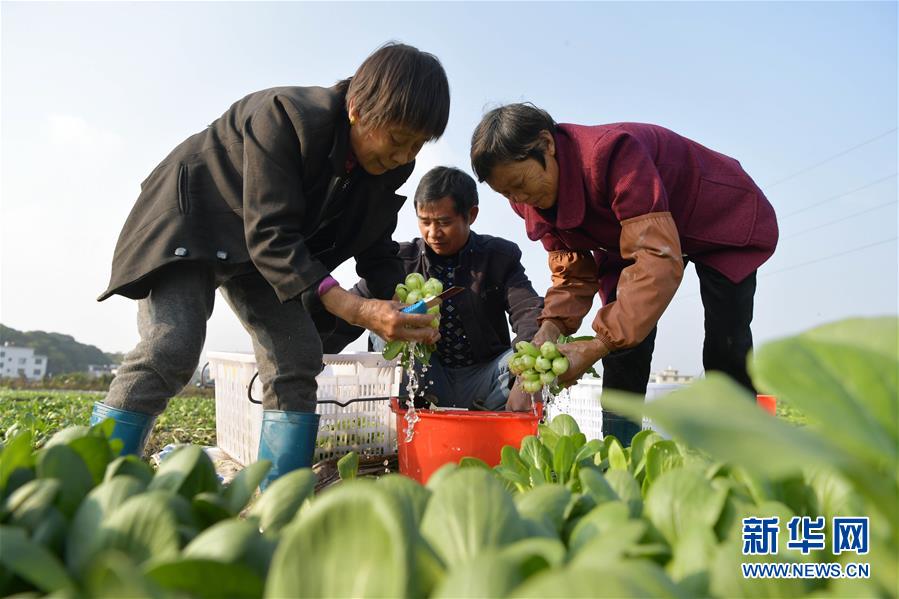 12月2日,在江西省萍乡市上栗县赤山镇大院村,当地农户在蔬菜种植扶贫基地内采摘刚成熟的上海青。 近年来,江西省萍乡市上栗县赤山镇为农户拓宽产业路径,充分利用辖区内水田纵横的优势,大力发展蔬菜种植业,引进上海青、西芹、辣椒、莴笋等12个品种,四季出菜,让农民“冬闲不闲”。农产品通过直销包销的方式与城区各大餐饮酒店对接,让新鲜蔬菜直接上餐桌,帮助当地农民脱贫增收。 新华社记者 彭昭之 摄